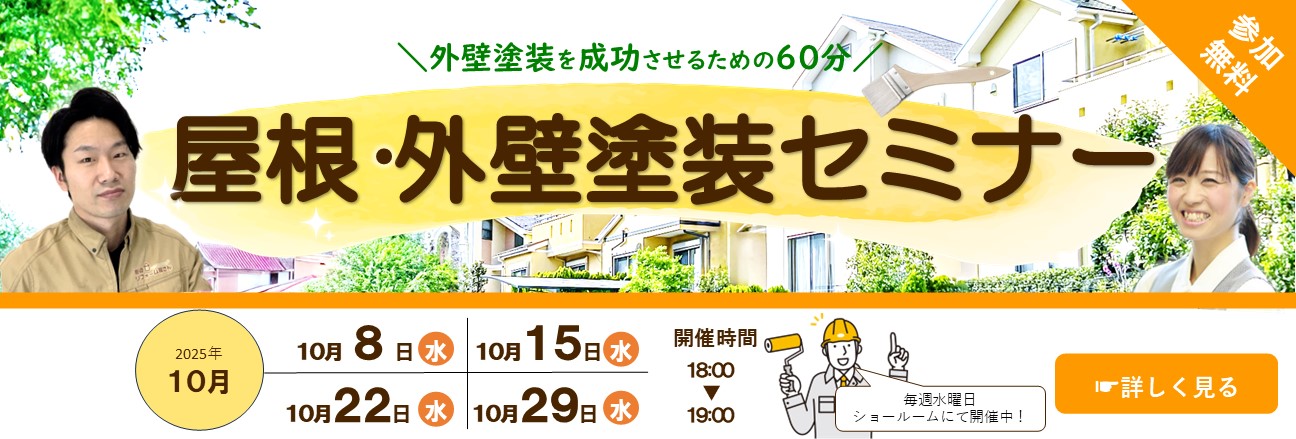 - 2025年10月01日お知らせ【10月開催!】外壁塗装セミナーのご案内