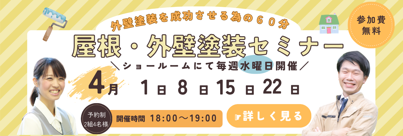 - 2026年03月31日お知らせ【4月開催!】外壁塗装セミナーのご案内