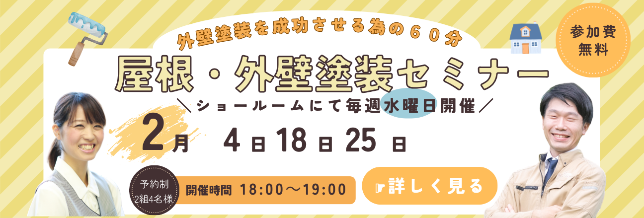 - 2026年02月01日お知らせ【2月開催!】外壁塗装セミナーのご案内
