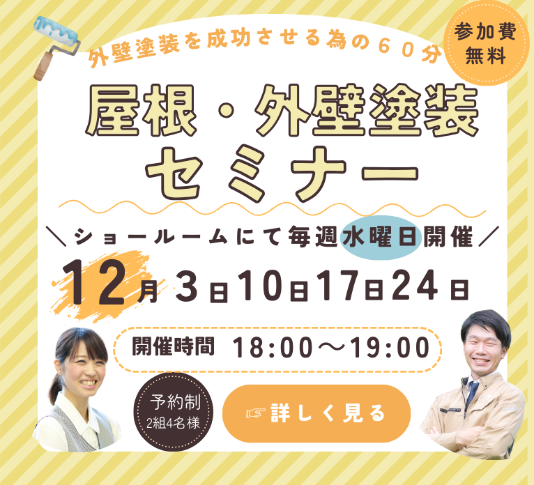 12月に予定しております、外壁塗装セミナー(仙台泉ショールーム開催)のご案内です!