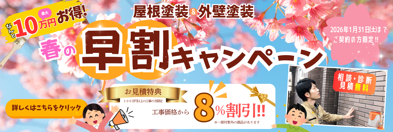 - 2025年11月28日お知らせ🌸【屋根・外壁塗装】春の早割キャンペーン🌸