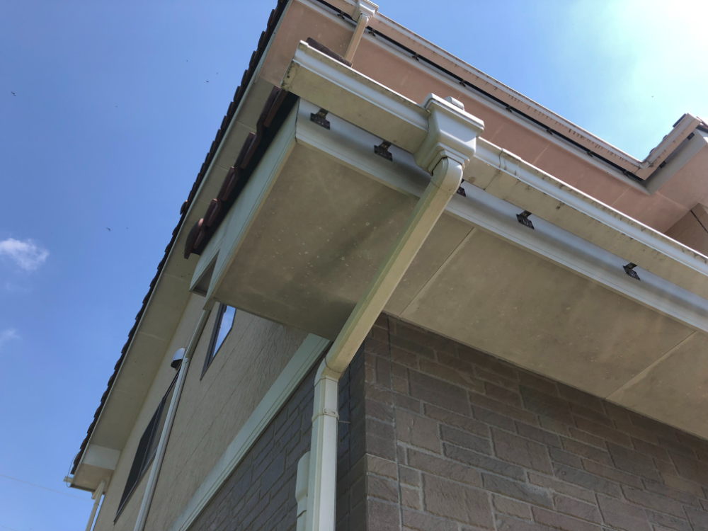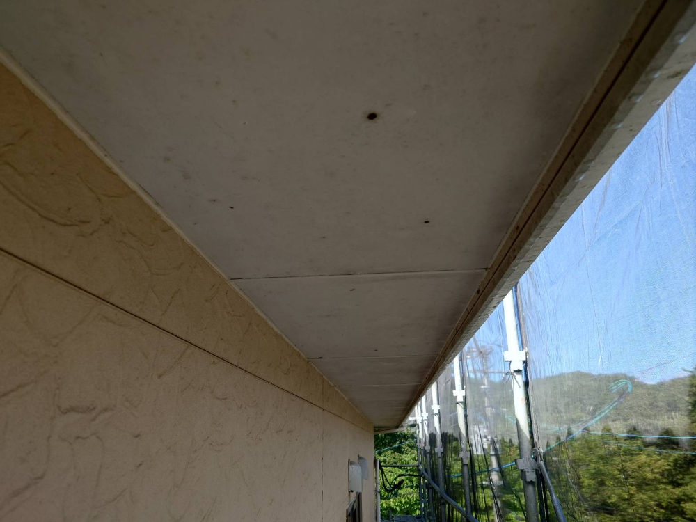 屋根・外壁・軒天の各所に汚れが付着し、塗膜の保護機能が低下していました。特に外壁のひび割れや補修跡、幕板の腐食、シーリングの全体的な断裂は、雨水浸入のリスクが高いため、早急な補修と塗り替えが必要な状態でした。