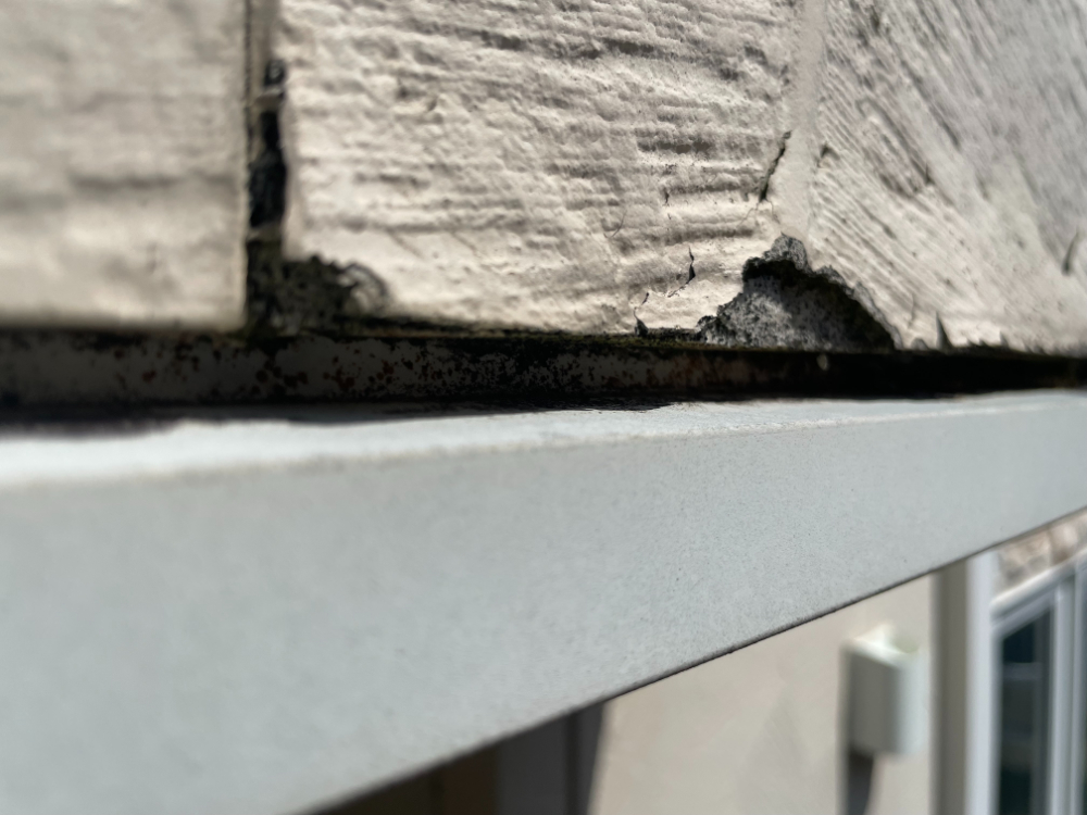 建物全体で「水の侵入」を許しやすい状態です。サッシ廻りや目地のシーリングは断裂し、防水機能を喪失しています。さらに外壁やバルコニーには腐食や凍害、ひび割れが広がっており、素材自体の強度が低下しています。雨樋の色褪せや汚れも重なり、建物へのダメージ蓄積が懸念される状況です。